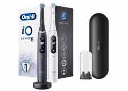 Sada dvou elektrických rotačních zubní kartáčků ORAL-B iO 8 s magnetickou iO technologií pro lepší čištění zubů. Inteligentní kartáčky s interaktivním displejem. Senzor tlaku, časovač.