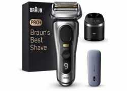 Bezdrátový planžetový holící strojek Braun Series 9 Pro pro hladké oholení. S nabíjecí/čistící základnou a pouzdrem.