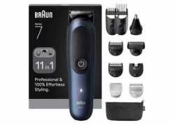 Bezdrátový zastřihovací strojek Braun Series 7 AIO7540 k zastřihávání vlasů, vousů a těla. 9 nástavců, výdrž 120 minut, samoostřící čepele ProBlade.