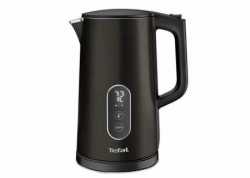 Rychlovarná konvice Tefal v černém provedení. Dotykové ovládání, 5 variant nastavení teploty, dvojitý plášť, objem 1,7 l, výkon 1800 W, vyjímatelný filtr.