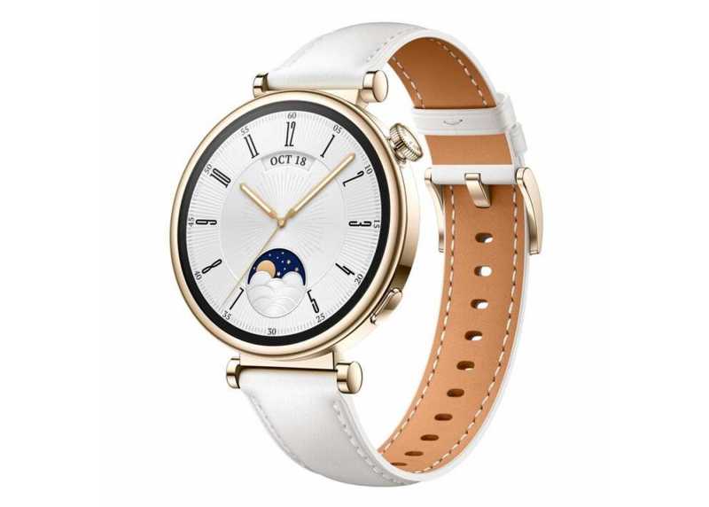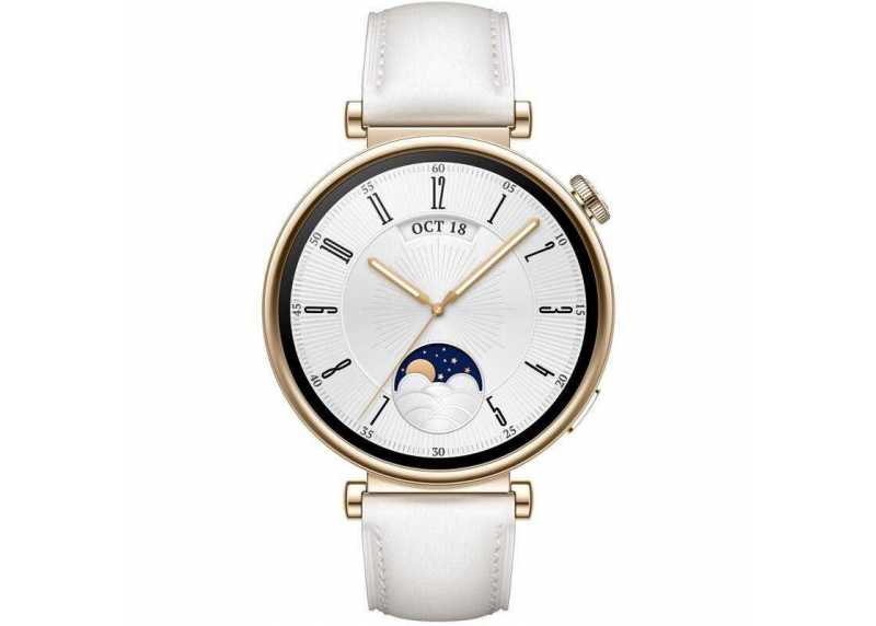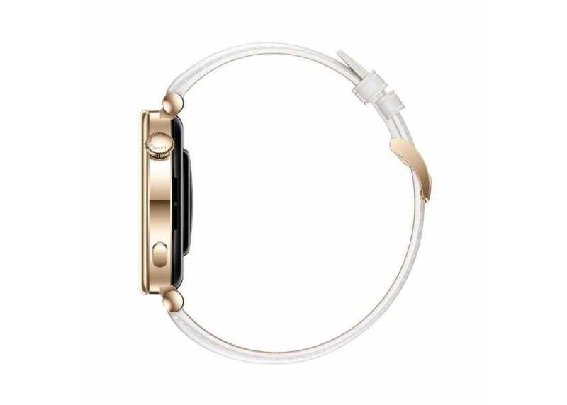 GT4 s 41mm ciferníkem jsou uschovány v třpytivé elegantní obrubě s řemínkem z nerezové oceli. Tento model má řemínek z bílé kůže s hnědým vnitřkem. Menší ciferník a ladné linie činí z hodinek ideální doplněk pro ženskou ruku. Přizpůsobitelný vzhled ciferníku s funkcí AOD (Always on Display) maximálně odrazí váš vkus a styl, vybírat můžete z nabídky vzhledů nebo si vytvořit zcela vlastní unikátní styl. Otočná korunka nejen přibližuje hodinky tradičnímu vzhledu, ale slouží rovněž pro přiblížení aplikací na displeji a k rychlému přístupu k cílové funkci. Displej hodinek lze ovládat i s mokrými prsty díky vysoké obnovovací frekvenci.