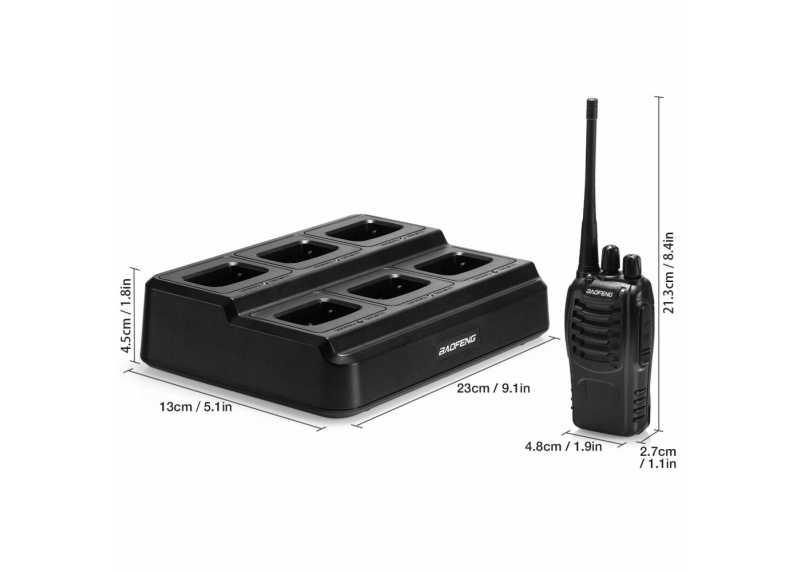 Šesticestná nabíječka pro nabíjení 6ks vysílačky BF-888S. Jedna zásuvka by pokryla potřeby nabíjení 6 zařízení, rezervovala by více zásuvek a prostor pro další elektroniku. Praktická velikost nabíječky pro více jednotek: 9,4 * 7,1 * 2,4 palce. Využijte prostor hospodárně!