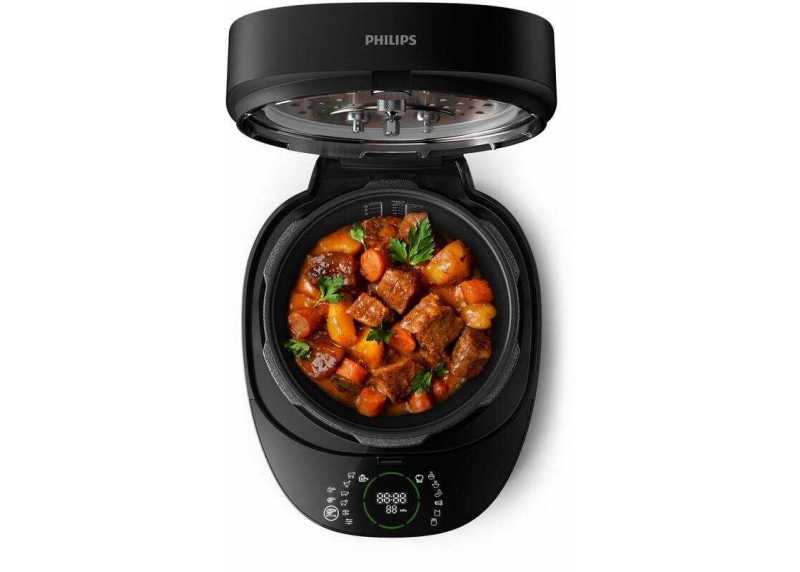 Multifunkční tlakový hrnec Philips s 35 přednastavenými programi pro vaření, přípravu v páře, smažení, pečení restování i ohřívání.
