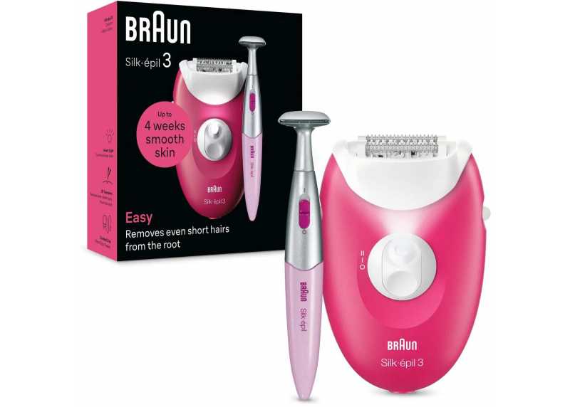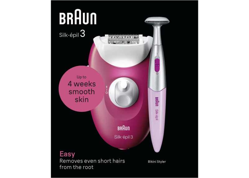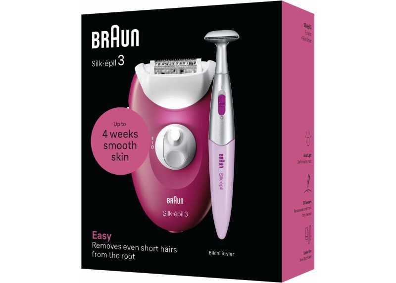 Drátový epilátor Braun Silk-épil 3 pro epilaci dámských chloupků na nohou a v oblasti bikin. V balení i přesný zastřihovač pro oblast bikin.