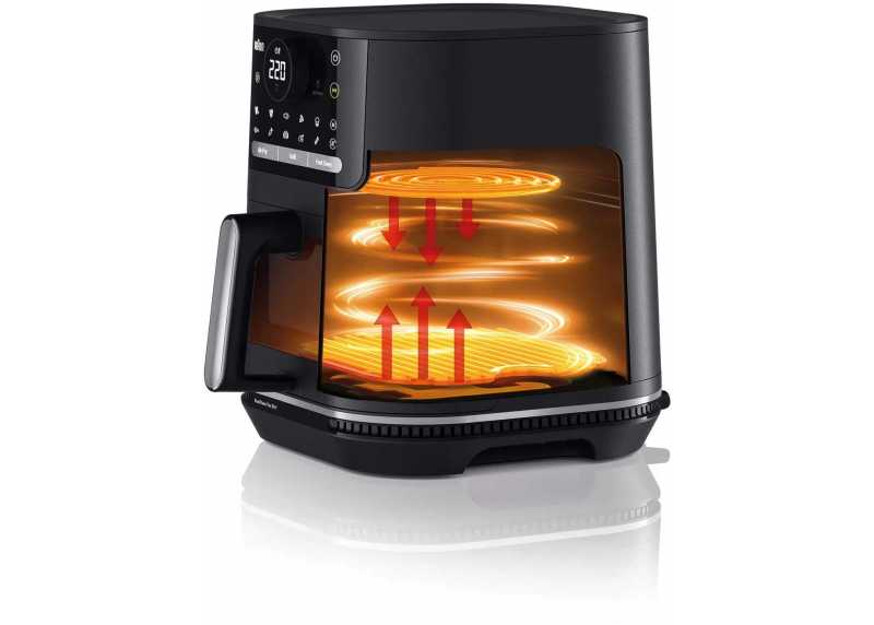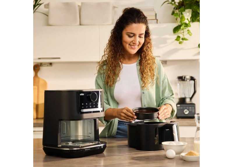 Horkovzdušná fritéza Braun Multifry 5 HF5073IBK s 20 přednastavenými programy pro multifunkční přípravu pokrmů.