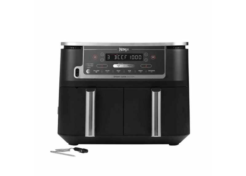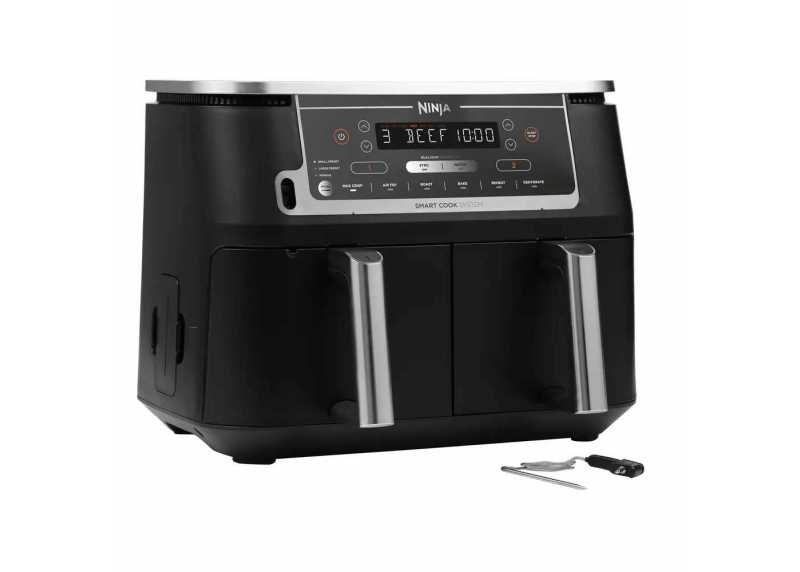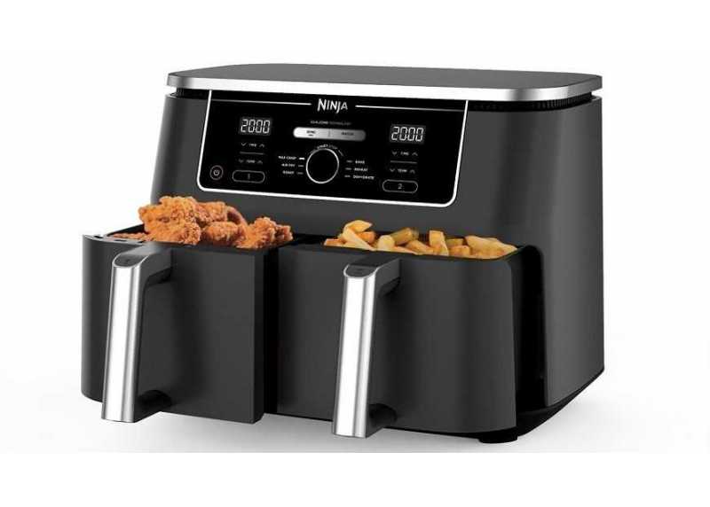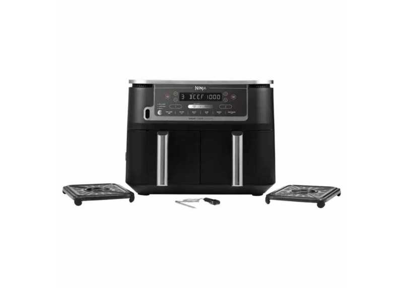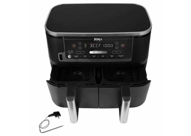 Horkovzdušná fritéza Ninja AF451EU nabízí 6 přednastavených programů, 2 nepřilnavé nádoby, digitální teploměr, objemem 9,5 l.