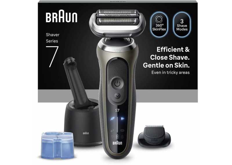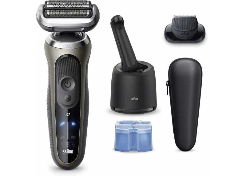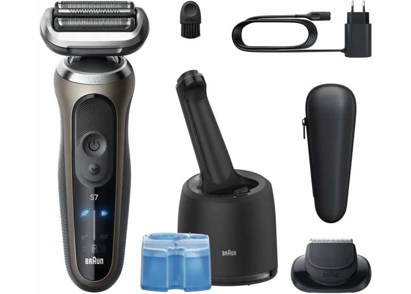 Bezdrátový holící strojek Braun Series 7 72-C7200cc s ohebnou holicí hlavou v 360 °. Stanice SmartCare 4v1 v balení.