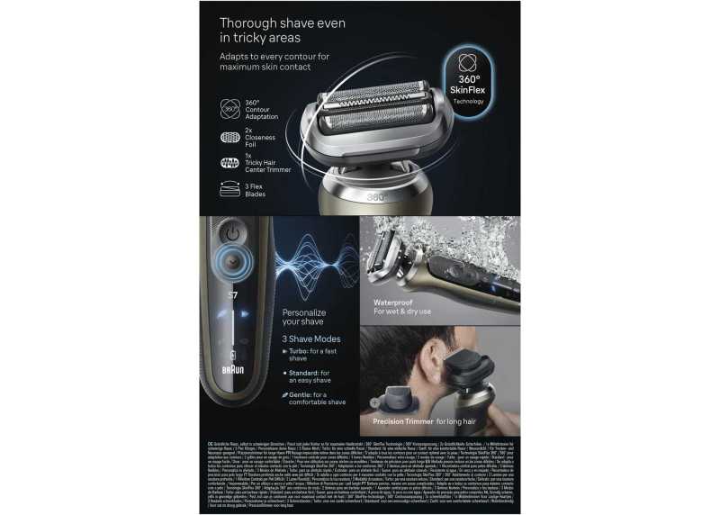 Braun Series 7 dokonale kopíruje křivky vašeho obličeje a oholí i hůře přístupná místa. S technologií SensoAdapt se účinně postará o jakkoliv husté vousy. Flexibilní kloubní spojení mezi tělem strojku a hlavou umožňuje otáčení hlavy v 360° směru. Na výběr má strojek 3 režimy rychlosti holení - turbo pro rychlé oholení, šetrný pro pohodlné oholení a standardní pro rychlé a šetrné oholení.
