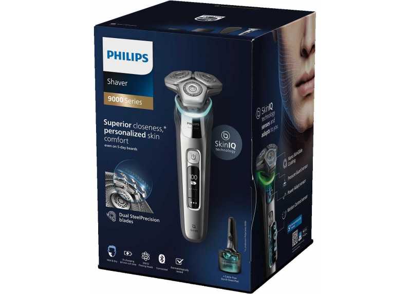 Bezdrátový holicí strojek s umělou inteligencí, technologií SkinIQ a rotačními čepelemi s břity Dual SteelPrecision nabídne pohodlné, rychlé a hladké oholení. Senzor pro rozpoznání hustoty vousů přizpůsobuje stříhací výkon.