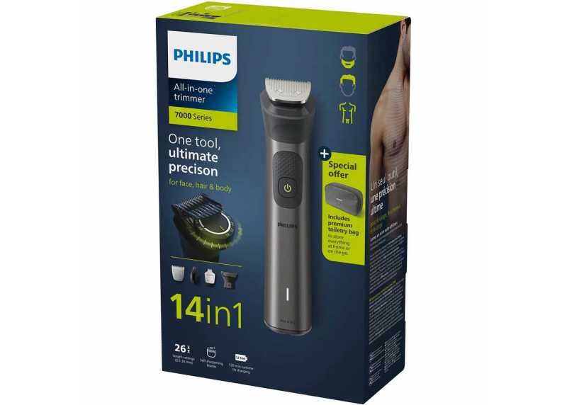 Philips Series 7000 MG7940/75 14v1 je všestranný zastřihovač vlasů a vousů navržený pro kompletní úpravu vzhledu od hlavy až k patě. Nabízí 14 funkcí v jednom zařízení, díky kterým snadno upravíte vousy, vlasy, tělo i jemné detaily bez nutnosti dalších přístrojů. Samoostřící břity z nerezové oceli zajišťují dlouhodobě přesný střih a šetrný kontakt s pokožkou. Voděodolné provedení umožňuje pohodlné použití nasucho i namokro a snadné čištění pod tekoucí vodou. Díky výkonné baterii s dlouhou výdrží je zastřihovač ideální jak pro každodenní použití, tak i na cesty. Philips Series 7000 je spolehlivým řešením pro muže, kteří chtějí profesionální výsledky a maximální flexibilitu v jednom přístroji.