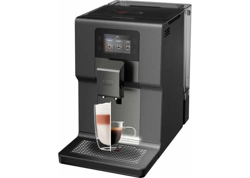 Automatický kávovar Krups s vestavěným mlýnkem na kávová zrna s 5 stupněmi hrubosti namletí. 15 nápojových programů. Velká nádržka na vodu s objemem 3 l. Najednou zvládne připravit až 2 šálky. Nádoba na mléko v balení.