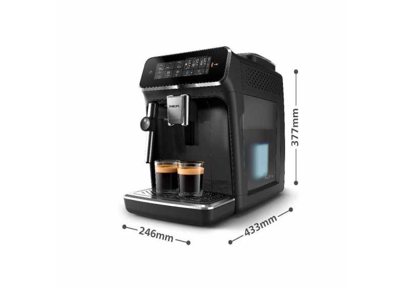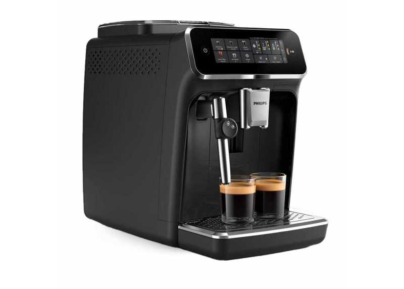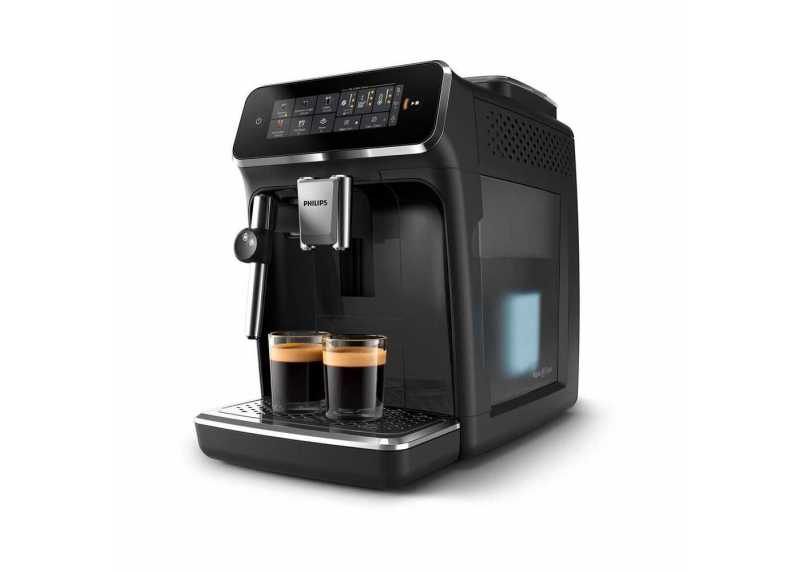 Philips Series 3300 EP3321/40 – automatický kávovar s tlakem 15 bar a keramickým mlýnkem. Nabízí funkci My Coffee Choice, tichý provoz SilentBrew, parní trysku a filtr AquaClean pro snadnou údržbu.