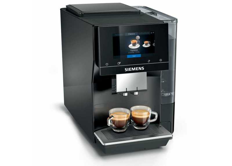 Automatický kávovar Siemens EQ700 Classic TP713R09 s barevným displejem s ikonami kávových nápojů. Integrovaný mlýnek, 36 nápojů na výběr, příprava ledové kávy, nastavení aroma, uložení oblíbeného nápoje, párování s aplikací.