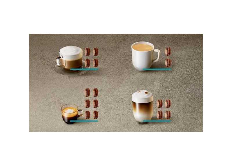 Kávovar disponuje širokou nabídkou přednastavených nápojů. Vybírat můžete celkově z 36 druhů, některé jsou však k výběru pouze v aplikaci Home Connnect. Mezi základními nápoji na kávovaru najdete espresso, cappuccino, kávu, horké mléko, latte macchiato a čaj. O každém nápoji získáte možnost se dozvědět více o jeho původu a složení a většinu z nich budete moci připravit rovnou ve dvou šálcích najednou. Kávovar je také schopen vám připravit i studené kávové nápoje s funkcí pro přípravu Slow Brew, Cold Brew a Cold Brew Macchiato.