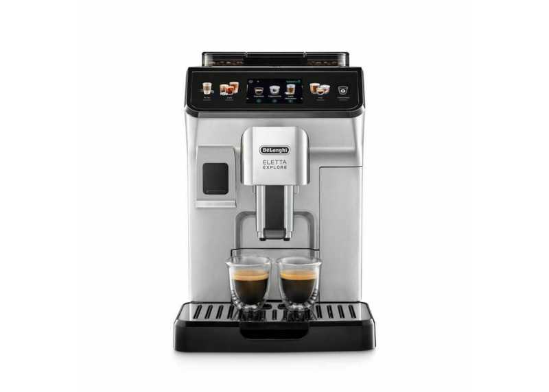 Automatický kávovar De'Longhi ECAM 450.65S s 13 stupni mletí kávy, tlakem 19 barů, zásobníkem kávy 300g a zásobníkem vody 1,8 l, přípravou až 50 nápojů, napařovač mléka.