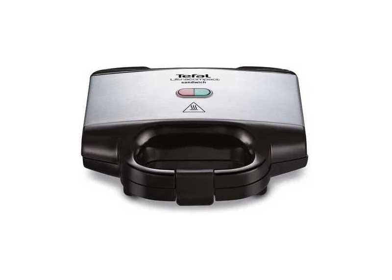 Sendvičovač Tefal Ultracompact s deskami pro panini. Nepřilnavý povrch desek. Chladné madlo. Dvojice indikačních kontrolek.
