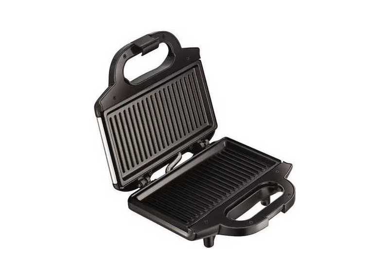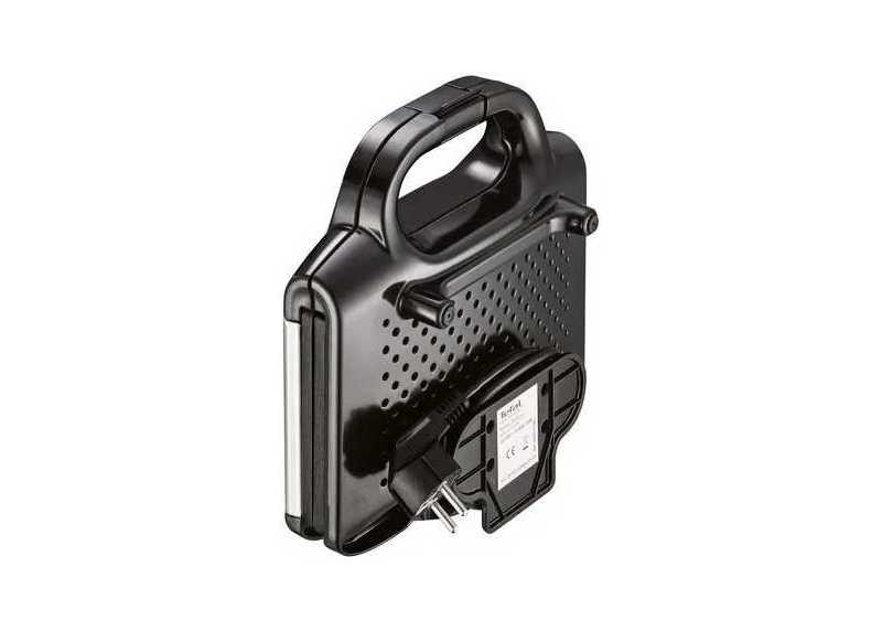 Sendvičovač Ultracompact od Tefalu má pevně zabudované pečící desky pro panini v rozměru 23×13 cm. Kromě panini si na nich ale můžete připravit i zapečenou bagetu, kousky masa nebo klasické toasty, které se tam vejdou po dvou. Nepřilnavý povrch se snadno čistí a tepelně odizolovaná rukojeť vás ochrání před spálením. Na rukojeti je zarážka, aby obě poloviny držely při zapékání pevně u sebe. Dvě světelné kontrolky vás informují o stavu nahřátí. Při skladování můžete přístroj uložit i ve svislé poloze, aby zabíral co nejméně místa.