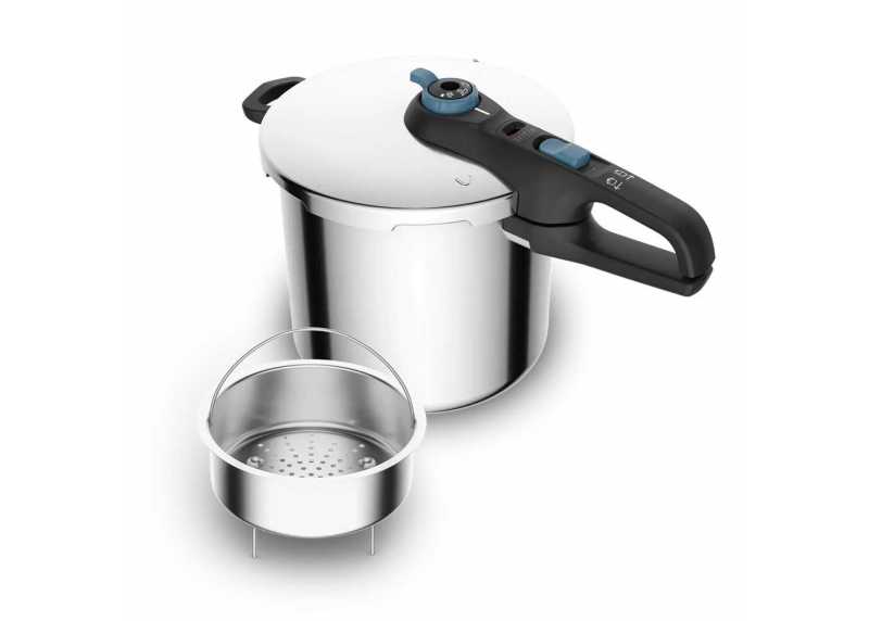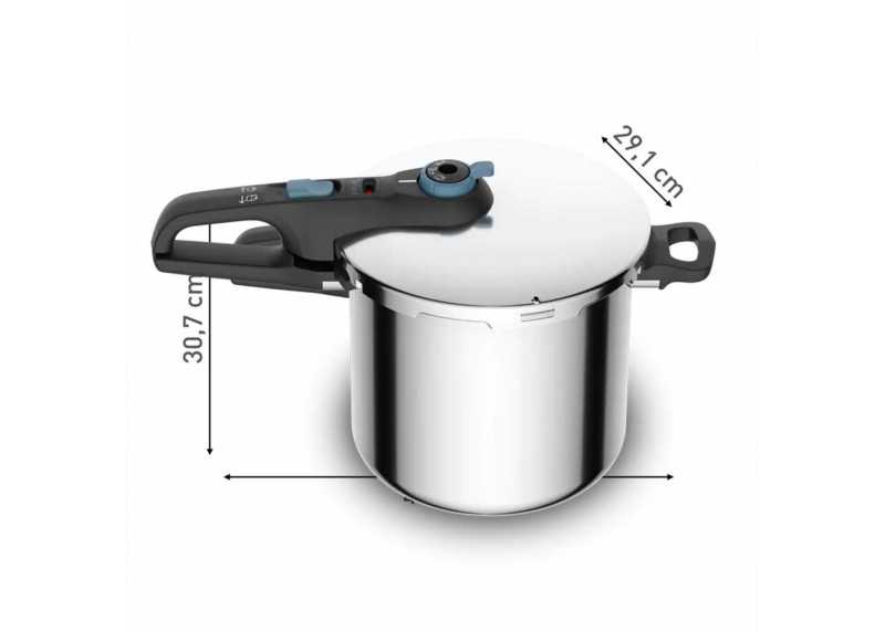 Tlakový hrnec Tefal Secure Trendy 8 l je spolehlivý pomocník do každé moderní kuchyně, který vám umožní připravit chutná jídla rychle, bezpečně a s minimální spotřebou energie. Díky objemu 8 l snadno uvaříte větší porce pro rodinu i hosty. Inteligentní 5 bodový bezpečnostní systém Secure monitoruje tlak a zabezpečuje každou fázi vaření. Silné tělo z kvalitní nerezové oceli zajišťuje rovnoměrné rozložení tepla a dlouhou životnost, zatímco praktická rukojeť usnadňuje manipulaci i přenášení. Tlakový hrnec výrazně zkracuje dobu vaření při zachování všech chutí a živin.