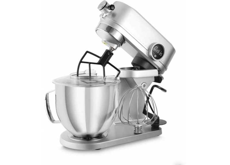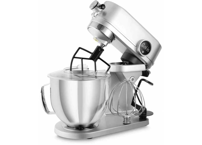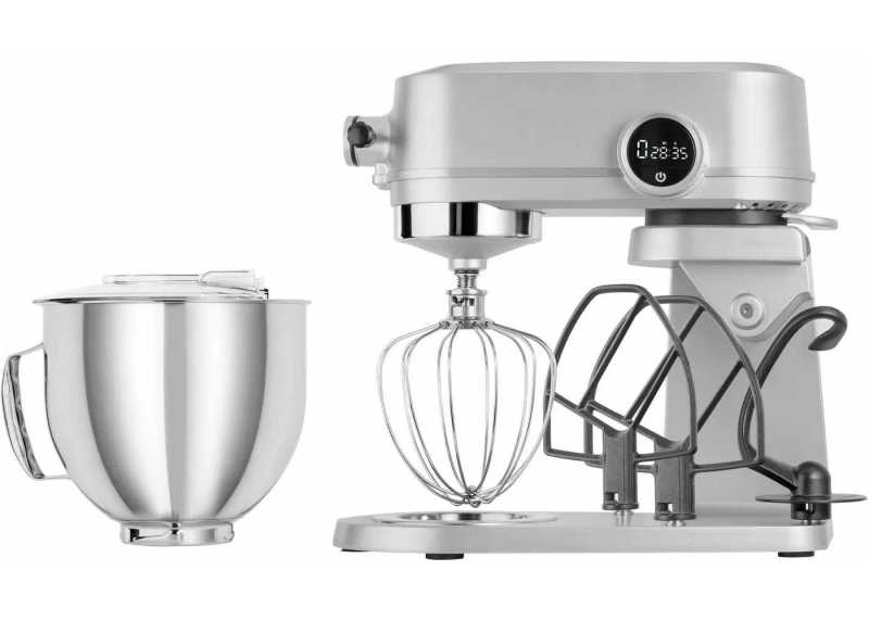 Catler KM 8012 je multifunkční kuchyňský robot s celokovovým tělem a kovovými převody, jehož invertorový DC motor o příkonu 800 W pracuje v osmi rychlostech tiše a s dlouhou životností. V nerezové míse o objemu pět litrů využívá planetární způsob míchání, takže dokonale zpracuje lehké šlehané krémy i těžká chlebová těsta, přičemž extra pevné metly drží v hlavě robota bezpečně a po práci je snadno vyjmete k umytí. Součástí balení je bohaté příslušenství a robot se tak během chvíle promění v mlýnek na maso s nástavcem pro klobásy, výrobník tří druhů těstovin, tvořítko na cukroví nebo kráječ a strouhač na zeleninu a sýr, díky čemuž zvládnete celý oběd od předkrmu po dezert bez dalších spotřebičů. Integrovaný displej zobrazuje odpočet nastaveného času a pokud robot zůstane chvíli bez činnosti, automaticky se vypne, aby šetřil energii a zvýšil bezpečnost. Konstrukce z vysoce pevného kovu slibuje stabilitu i při intenzivním hnětení a tichý chod umožní používat spotřebič kdykoli, aniž by rušil okolí.