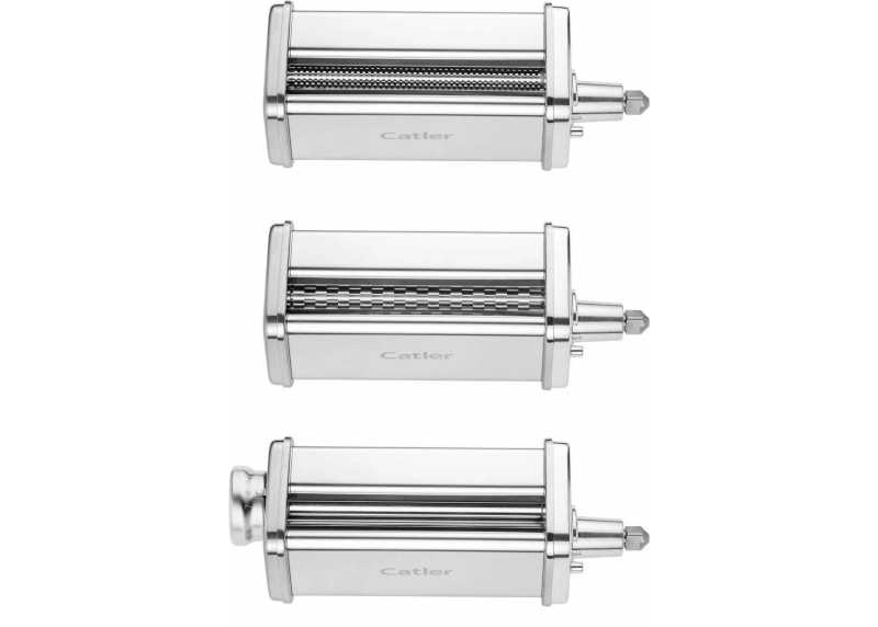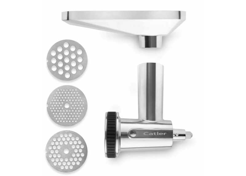 Kuchyňský robot Catler KM 1802 s multifunkční výbavou. Příkon 800 W. Hnětení, mísení, šlehání, mlýnek na maso, skrouhací nástavec, plnicí nástavec na uzeniny, nástavce na těstoviny. Objem mísy 5 l.