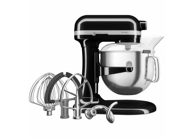 KitchenAid je s více jak 100 letou tradicí hrdým a osvědčeným výrobcem kuchyňského vybavení. Nejedné kuchařce už usnadnil každodenní dřinu. S kuchyňským robotem Artisan tak rozhodně nešlápnete vedle. Inovovaný design o zvedací mísu, která nahrazuje klasické sklopné rameno, umožnil zvětšit objem mísy oproti robotům se sklopným ramenem až p 40 %. Vyšší výkon umožňuje až 1,5x vyšší sílu míchání a hnětací sílu motoru. 11 rychlostí se postará o všechny ingredience. Nově přidaná extra pomalá rychlost umožňuje pohodlné přimíchávání křehkých ingrediencí. Celokovové tělo s protiskluzovou podložkou umožňuje práci na různých površích a v jakémkoli provozu. Praktický systém zvedání mísy umožňuje její vyjíždění nahoru a dolů a sklopení.