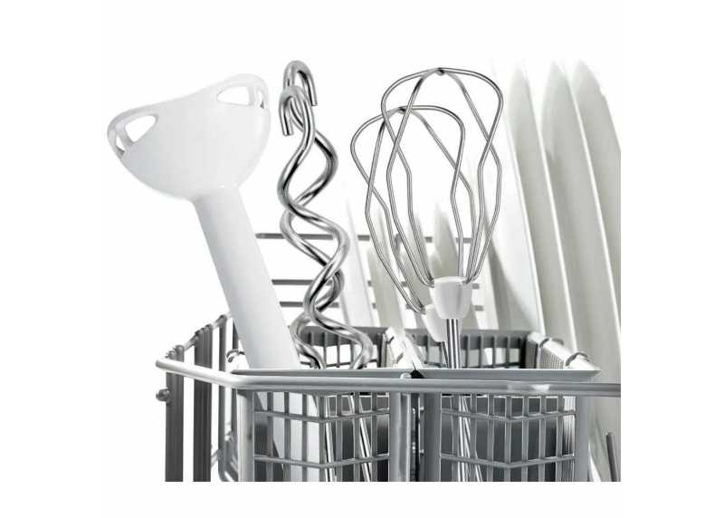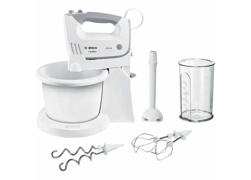 Součástí sestavy je stojan s automaticky rotující mísou, který umožňuje pohodlné šlehání a hnětení bez nutnosti držet přístroj v ruce. Díky bohatému příslušenství zvládne šlehač šlehání, míchání i hnětení různých druhů těst.