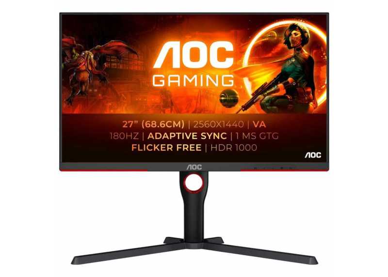 AOC Q27G3XMN/BK je 27" herní monitor s ostrým QHD rozlišením 2560 × 1440, rychlým VA panelem, obnovovací frekvencí až 180 Hz a odezvou 1 ms pro plynulý obraz a výhodu v akčních hrách, mini LED podsvit se 336 zónami lokálního stmívání a špičkovým jasem až 1000 cd/m² zajišťuje hlubokou černou i výrazné světelné detaily, antireflexní povrch udrží dobrou čitelnost v různých světelných podmínkách, širokoúhlý poměr 16:9 vyhoví multitaskingu i zábavě, třístranné bezrámečkové provedení usnadní sestavy s více obrazovkami, stojan nabízí nastavení výšky i pivot a díky VESA 100 × 100 monitor snadno upevníte na zeď nebo rameno, v balení nechybí kabely HDMI a DisplayPort pro okamžité zapojení.