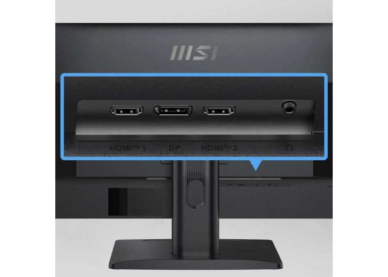 Ergonomie a péče o zrak jsou silnou stránkou tohoto modelu. Balíček MSI EyesErgo zahrnuje certifikaci TÜV, režim Less Blue Light, Flicker-Free a úpravu proti odleskům, takže oči méně trpí při dlouhých směnách. Výškově nastavitelný stojan umožní změnit náklon, otočení i pivot o 90° do portrétu, což ocení programátoři, analytici a editoři textu. Připojení zajišťují HDMI a DisplayPort, integrované reproduktory vyřeší základní ozvučení a VESA 100 × 100 usnadní montáž na rameno nebo zeď. Aplikace MSI Display Kit zjednodušuje nastavení obrazu i rozvržení oken, nechybí úsporný režim a splnění Energy Star 8.0 pro nízkou spotřebu. Celkově jde o všestranný pracovní monitor, který drží krok s moderní produktivitou a zároveň šetří zrak i prostor na stole.