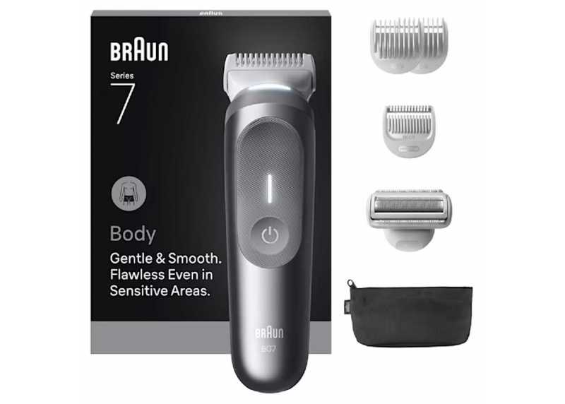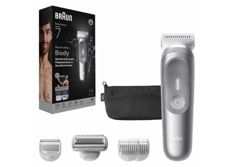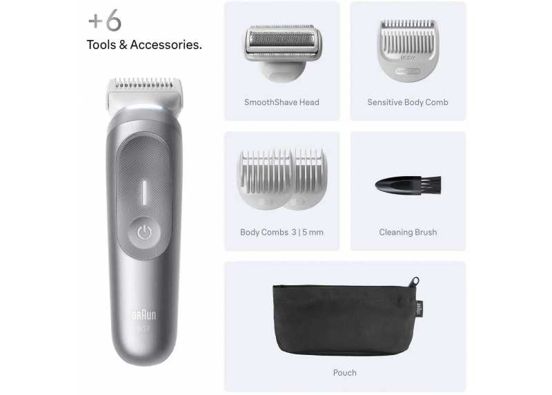 Braun BG7550 je prémiový tělový zastřihovač navržený pro bezpečné, přesné a pohodlné oholení celého těla. Kombinuje výkonný motor, inteligentní design a šetrné technologie, které umožňují upravit ochlupení na hrudi, zádech, podpaží i v citlivých oblastech bez podráždění pokožky. Inovativní čepel SkinShield zajišťuje hladké klouzání po pokožce a minimalizuje riziko pořezání i v oblastech s jemnou a citlivou pokožkou. Díky technologii AutoSense přístroj automaticky přizpůsobuje výkon hustotě chloupků a zajišťuje rovnoměrný výsledek v každé části těla. Osvětlení SmartLight vám pomůže zvýraznit i malé chloupky a osvětlí i hůře přístupná místa.