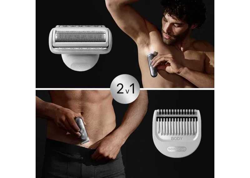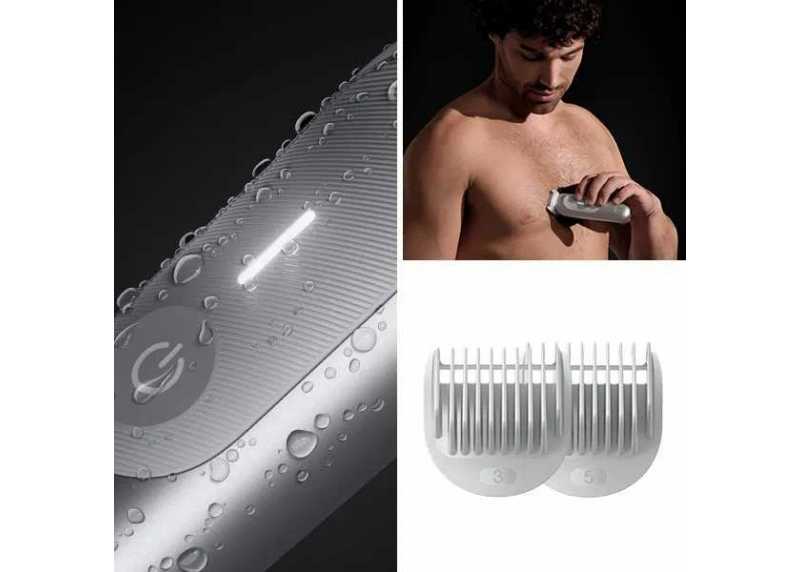 Zastřihovač na tělo s výdrží 100 minut. Chrání pokožku proti pořezání a poranění. Vhodný i pro citlivé oblasti na těle.