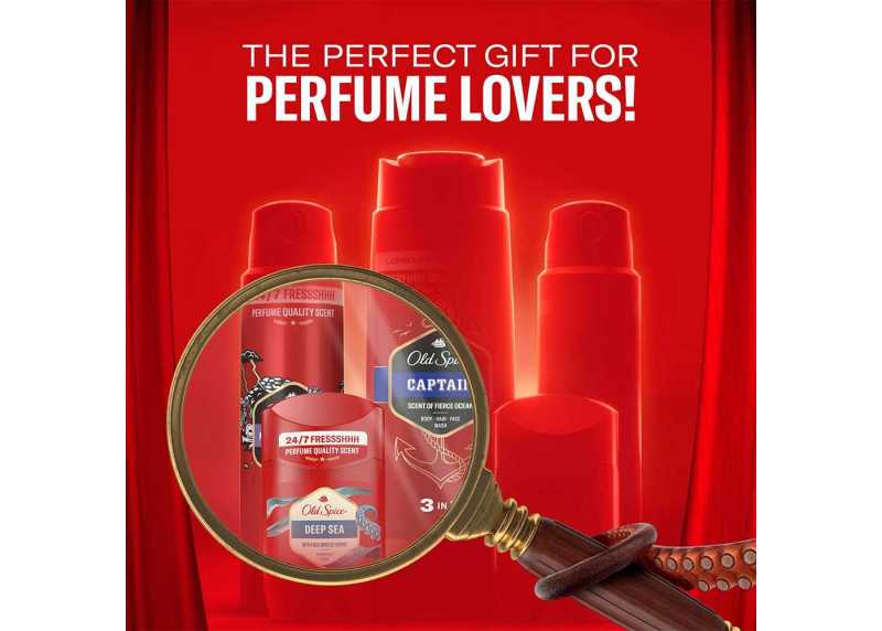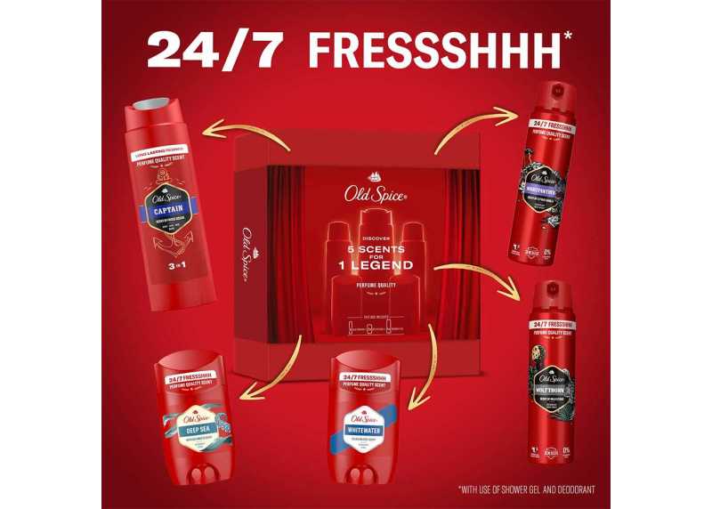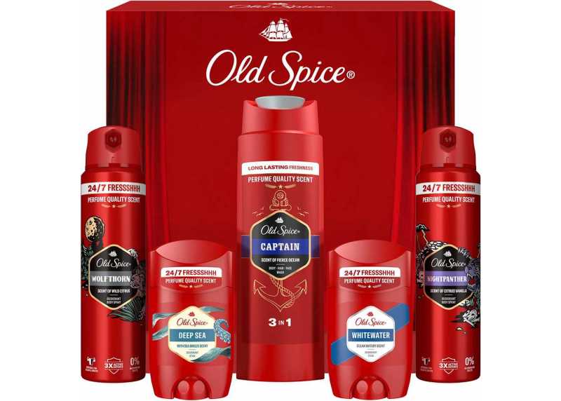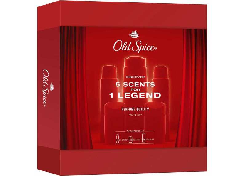 Pánská dárková sada OLD SPICE Discovery Box je dárková sada pro muže, kteří chtějí vyčnívat – vůní, stylem i sebevědomím. Sada nabízí 5 kosmetických produktů pro dokonalou péči o vaše tělo. O svěží pocit a krásnou vůni po celý den se postarají 2 tuhé deodoranty a 2 deodoranty ve spreji. V sadě najdete i 1 sprchový gel. Tato kombinace pečujících produktů nabízí osvěžující energii, která vydrží po celý den. Sada je navržena tak, aby potěšila každého muže, ať už jde o každodenní hygienu, sportovní rutinu nebo rychlé ranní probuzení. Atraktivní balení dělá z Discovery Boxu ideální dárek k narozeninám či Vánocům.