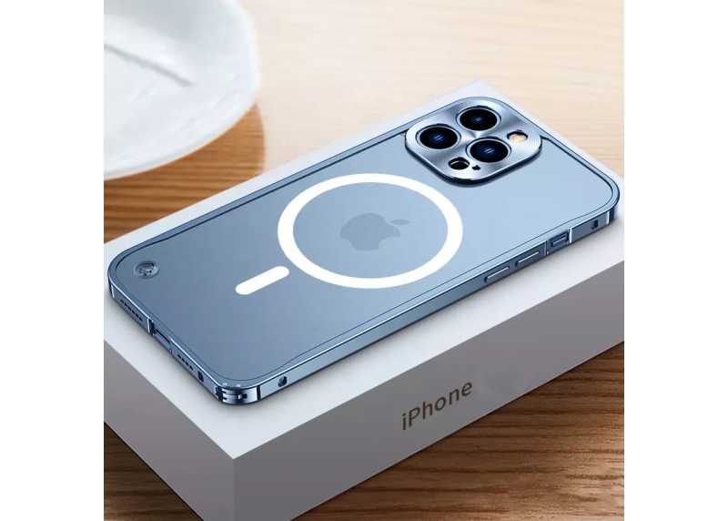 Kovový magnetický kryt na iPhone 11 v modré barvě - Magsafe.