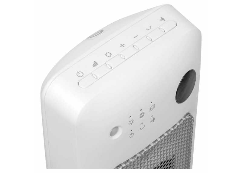 Dotykový LED panel umožní rychle nastavit všechny funkce – výkon, teplotu i případné režimy – a díky přehledným ikonám a světelným indikátorům máte okamžitý přehled o aktivních volbách i nastavené hodnotě. Ovládání je intuitivní, takže snadno zkombinujete více nastavení najednou, a pro ještě větší pohodlí je k dispozici dálkový ovladač. Při přenášení mezi místnostmi oceníte integrovanou rukojeť, která usnadní manipulaci.