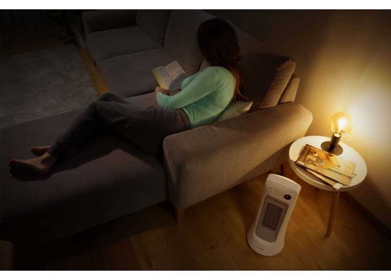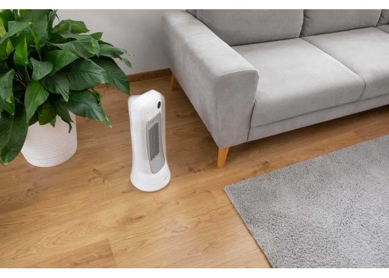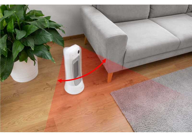 Keramické topidlo s PTC topnými články pro tiché a efektivní vytápění. 2 stupně výkonu. Dálkové ovládání. Funkce oscilace.