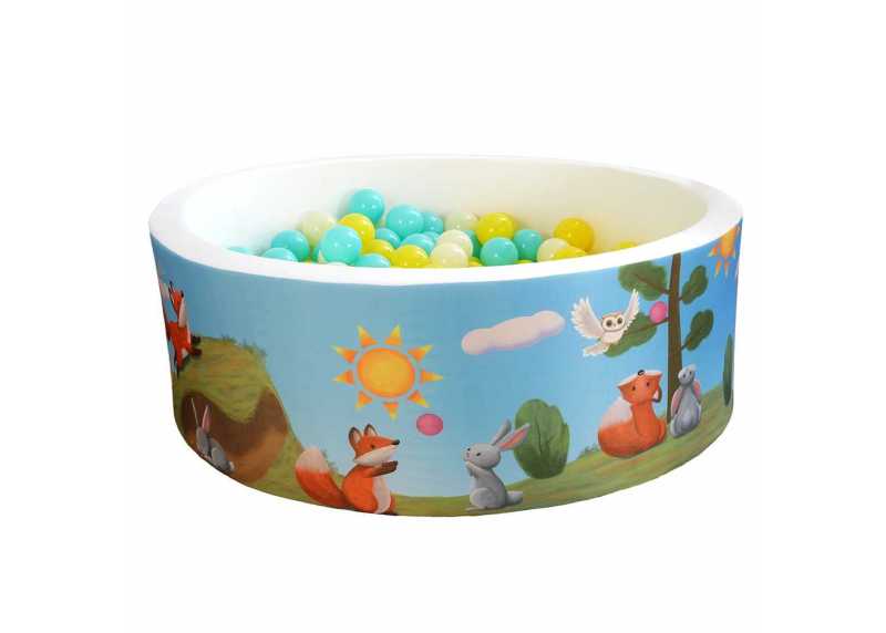 Nechte se vtáhnout do zábavné hry lišky a zajíce. Suchý bazének nemusí být jen o kuličkách, může vyprávět i pohádky. A jednu takovou pro vás přichystala liška se svými přáteli zajícem a sovou. Po vnější straně bazénku se táhne ilustrace znázorňující jeden den v životě malé lišky. Vyprávět její příběh však už bude na vás. Bazének je vhodný pro děti od 1 roku. Spolu s nimi můžete nahlédnout do života lišky a vyprávět, co dělala celý den.