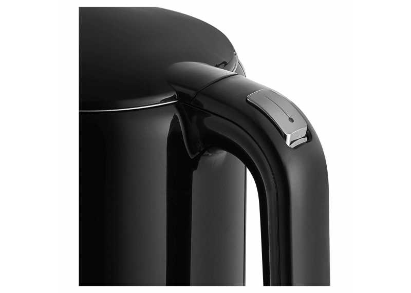 Konvice klade důraz na bezpečí i snadnou údržbu: trojitý systém ochrany konvici automaticky vypne po dosažení zvolené teploty, při nedostatku vody i při nesprávném usazení na základnu, přičemž konec ohřevu doprovodí zvukové upozornění. Jemný filtr ve výlevce zachytává nečistoty a částečky vodního kamene, takže čištění je rychlé. Dvouplášťová konstrukce kombinuje vnitřní nerez pro hygienu a menší ulpívání usazenin s elegantním vnějším pláštěm. Technologie Cool Touch udržuje povrch chladný i při varu.