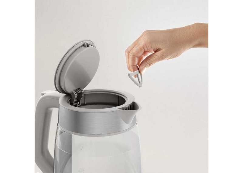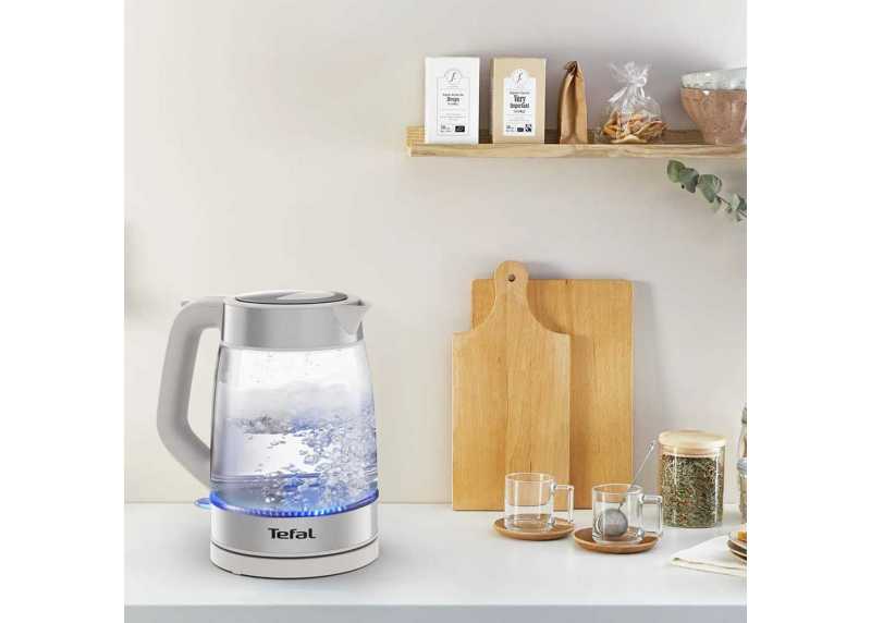 Moderní skleněná konvice Tefal KI605B30 s objemem 1,7 l umožňuje rychlou vizuální kontrolu stavu vody. Na první pohled tak vidíte, kde se nachází hladina a kolik je třeba doplnit vody, případně zda už není na čase se připravit na zalití šálků s čajem. Rysky na skle vám usnadní doplňování a jistě oceníte i označení jednoho šálku. Modré podsvícení dodá procesu vaření šmrnc. Topná spirála je skrytá pode dnem konvice, takže design vizuálně nic neruší. Snadné je i čištění konvice zevnitř. Integrovaný filtr v nálevce zachytí vodní kámen a nepropustí jej do vašich hrnků. Navíc jde vyjmout a vyčistit. Ergonomická rukojeť s protiskluzovou úpravou zvyšuje pohodlí a bezpečí při nalévání, pomocí tlačítka na rukojeti snadno otevřete konvici i jednou rukou. Konvice je vybavena i filtrační vložkou proti usazeninám i snadno otevíratelným víkem, které zjednodušuje plnění. Šedé provedení působí moderně a univerzálně a skvěle se hodí do každé kuchyně. Tefal KI605B30 je spolehlivý a stylový doplněk, který udělá přípravu horkých nápojů rychlou, pohodlnou a vizuálně atraktivní.