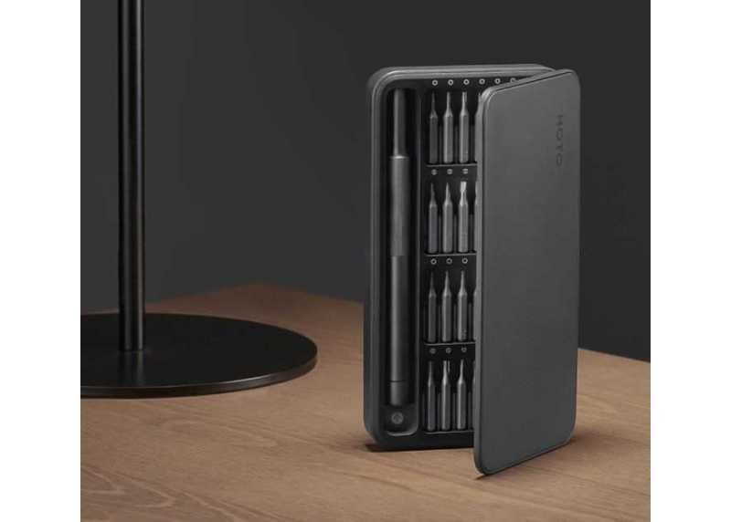 Praktické pouzdro pro uložení bitů a rukojeti vyniká minimalistickým a elegantním designem. Integrovaný magnet uvnitř přidržuje bity na svém místě, aby se nepoztrácely. Pružinový závěs na víku usnadňuje otevírání a zavírání. Víko se vyklápí až do úhlu 115°. Pouzdro je vyrobeno z kombinace hliníkové slitiny a ABS plastů, takže celá sada je lehká a dá se vzít všude sebou.