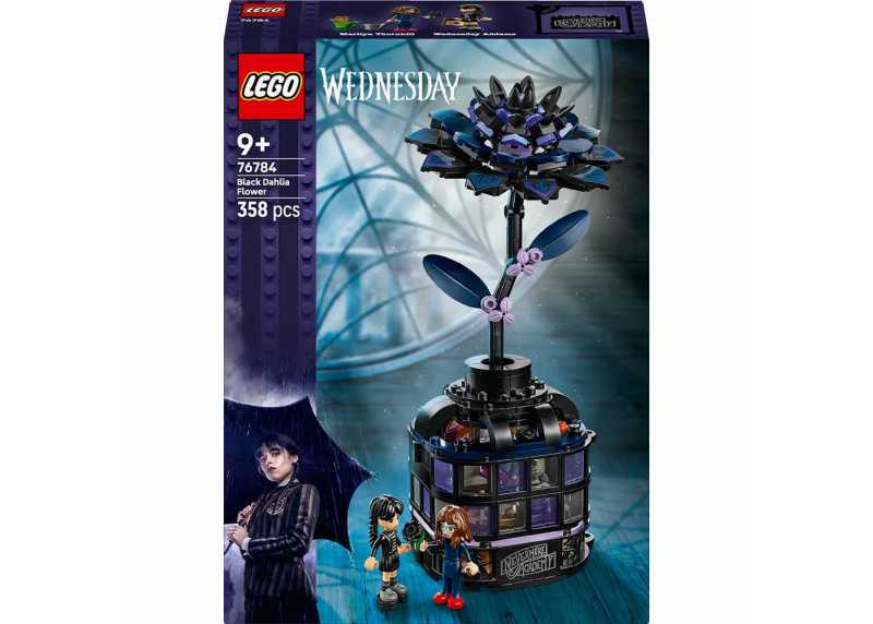 Stavebnice LEGO Wednesday 76784 obsahující černou Jiřinu ze seriálu Wednesday, kterou si seskládáte z 358 kostek. Stavebnice 9+.
