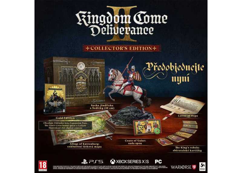 Sběratelská krabice obsahující hru a bonusový materiál ke hře. Kromě klíče ke hře na Steam najdete v dekorativní krabici i sochu Jindřicha na Šedivce o výšce 30 cm, exkluzivní látkovou mapu alejí Kutné hory, sadu spon Coats of Valor, sběratelské kartičky King's Rebels a dopis Jana Ptáčka - Letter of Hope. K základní hře obdržíte rozšíření Expansion Pass, DLC Gallant Huntsman's Kit, bonusový quest The Lion's Crest.