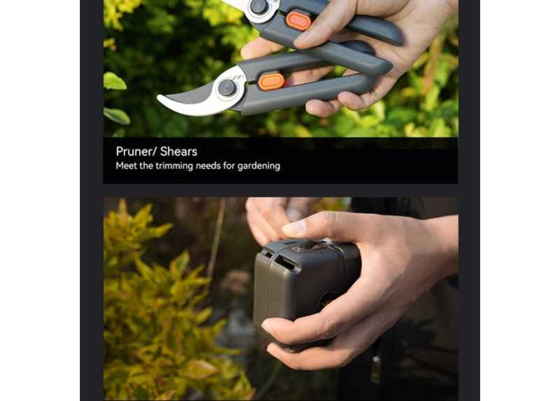 Box B: Zahradnické nůžky, rovné zahradnické nůžky, rukojeť elektrického postřikovače 1 l, 3× postiřkovací lahev 1 l, 100 m vázacího drátu