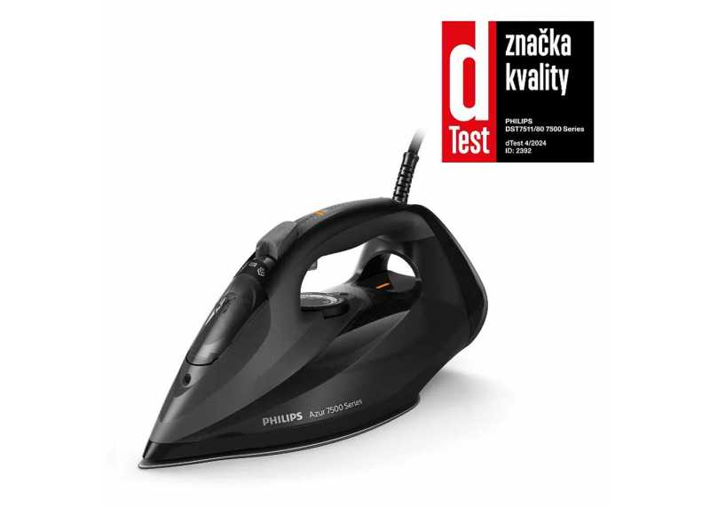 Parní žehlička Philips DST7511/80 s parním rázem 260 g/min. Žehlící plocha SteamGlide Elite. Nádržka s kapacitou 300 ml. Ochrana Drip-Stop proti skvrnám na oblečení. Inovativní systém odvápnění.