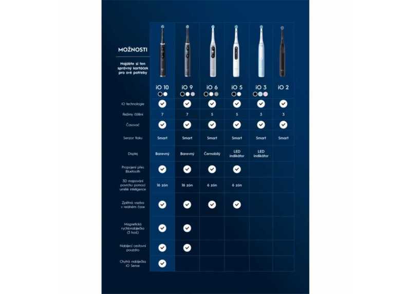 Oral-B iO Series 6 je elektrický zubní kartáček pro celou rodinu. Kartáček nabízí více čisticích programů pro každodenní péči, citlivé dásně i intenzivní čištění, takže si každý v domácnosti snadno najde ideální režim. Zabudovaný dvouminutový časovač hlídá správnou dobu čištění a dlouhá výdrž baterie zajistí pohodlné používání doma i na cestách. Duo sada je ideální pro páry nebo rodiny, které chtějí zdravější úsměv a špičkovou ústní hygienu bez kompromisů. Jemná kartáčková hlavice mimořádně efektivně odstraňuje zubní plak a zanechává pocit dokonale hladkých zubů. Lehká konstrukce, Inteligentní senzor tlaku vás upozorní na příliš silné čištění a chrání tak dásně, zatímco interaktivní OLED displej nabízí přehled režimů a užitečné zpětné vazby.