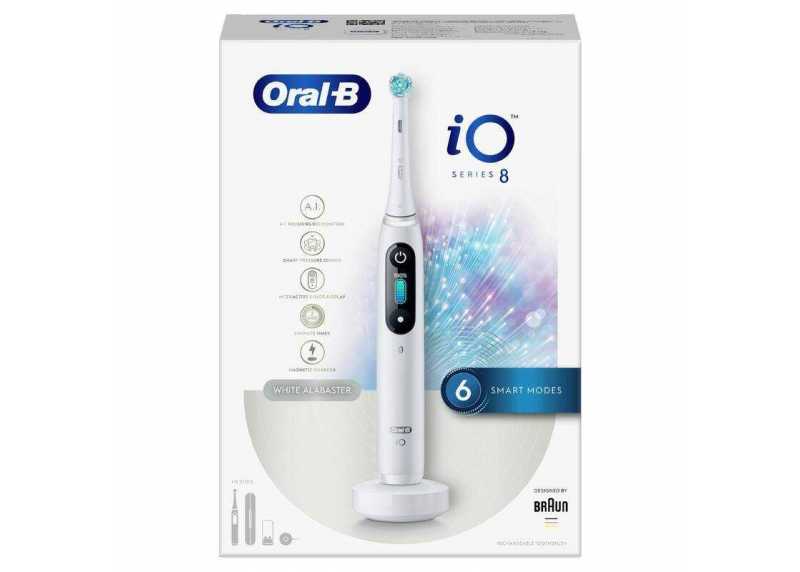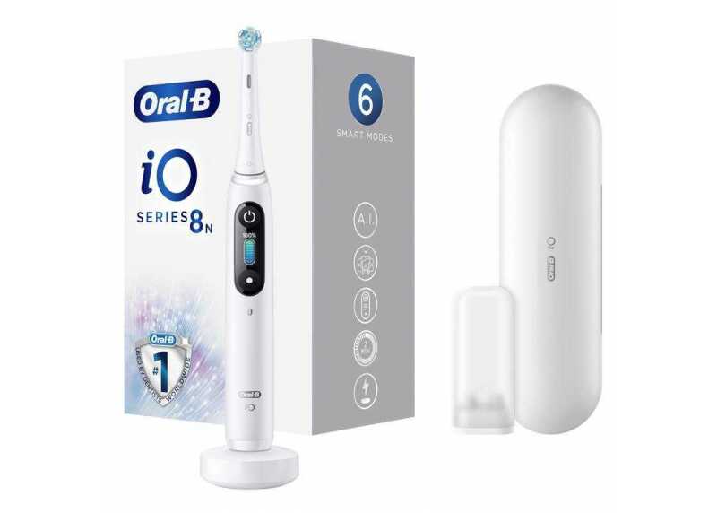 Elektrický rotační zubní kartáček ORAL-B iO 8N,White Alabaster, 6 režimů čištění, tlakový senzor, časovač, indikátor baterie, 1 náhradní hlavice.